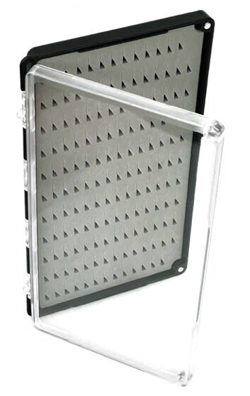 HOLDS UP TO 152 FLIES. 5/8" DEEP BOX IS IDEAL FOR DRY FLIES AND NYMPHS OF ALL SIZES. RED OR BLACK BOTTOM FOR EASY IDENTIFICATION. MAGNETS ON THE CORNERS KEEP THE LID SHUT.